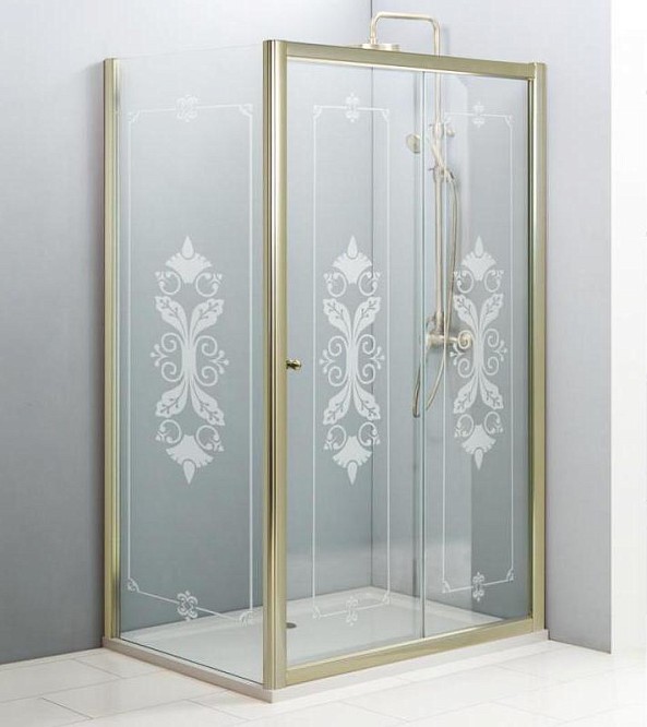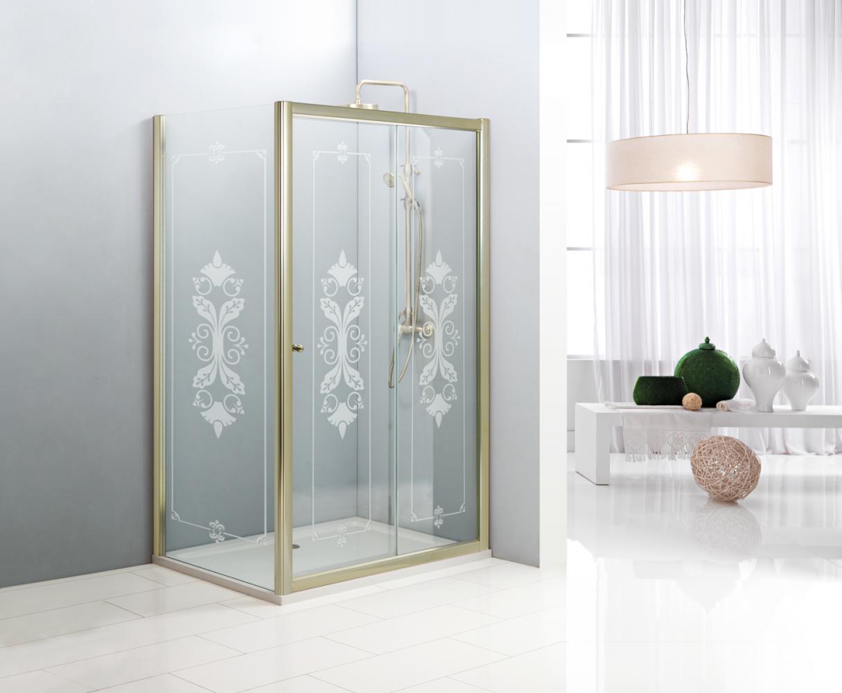Душевой уголок Cezares Giubileo AH-1 120х90 см золото/прозрачное с матовым принтом GIUBILEO-AH-1-120/90-SCORREVOLE-CP-G