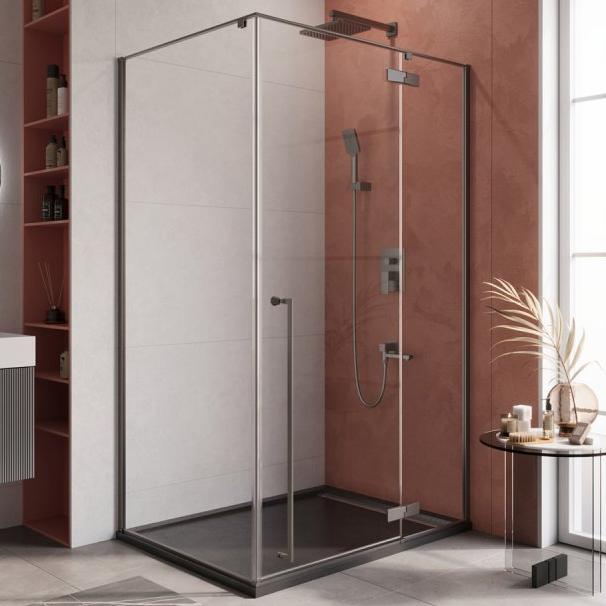 Прямоугольный душевой уголок Cezares Liner AH-1 120х90х195 см оружейная сталь LINER-AH-1-120/90-C-GM-L(R)