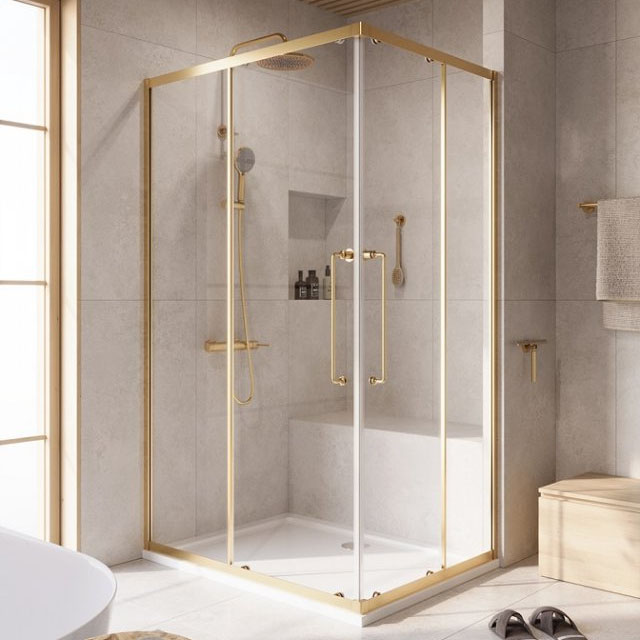 Прямоугольный душевой уголок Cezares RELAX-304 120х90х200 см брашированное золото RELAX-304-AH-2-120/90-C-BORO