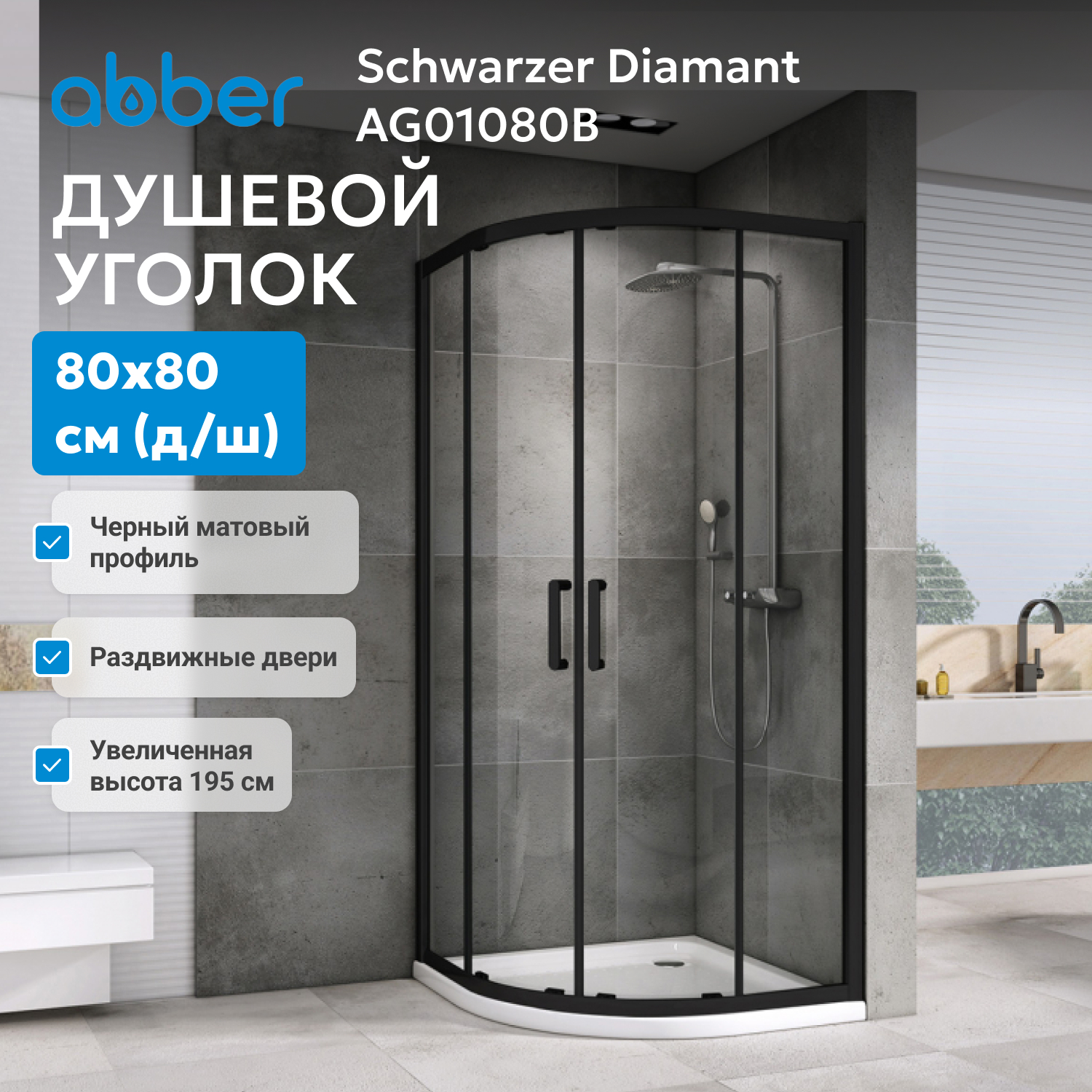 - Душевой уголок Abber Schwarzer Diamant 80х80х195 см черный/прозрачное AG01080B