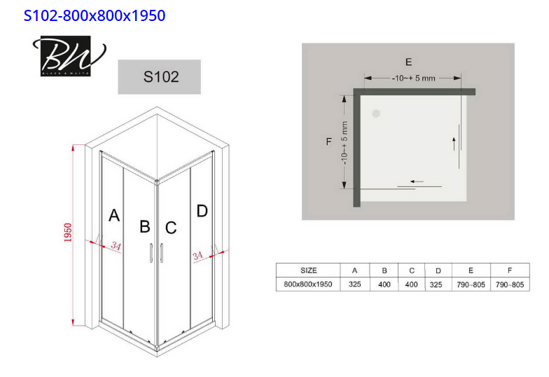 Душевой уголок Black & White Stellar Wind S102 80х80х195 см хром/прозрачное 1028080