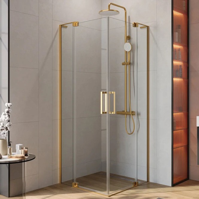 - Душевой уголок Cezares Slider A-2 70-80х70-80 см золото браш/прозрачное SLIDER-A-2-70/80-C-BORO