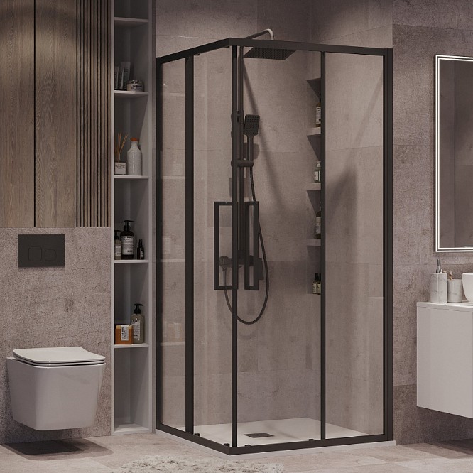 Душевой уголок Grossman Cosmo (80х80х195 см) черный/прозрачное 300.K33.02.8080.21.00
