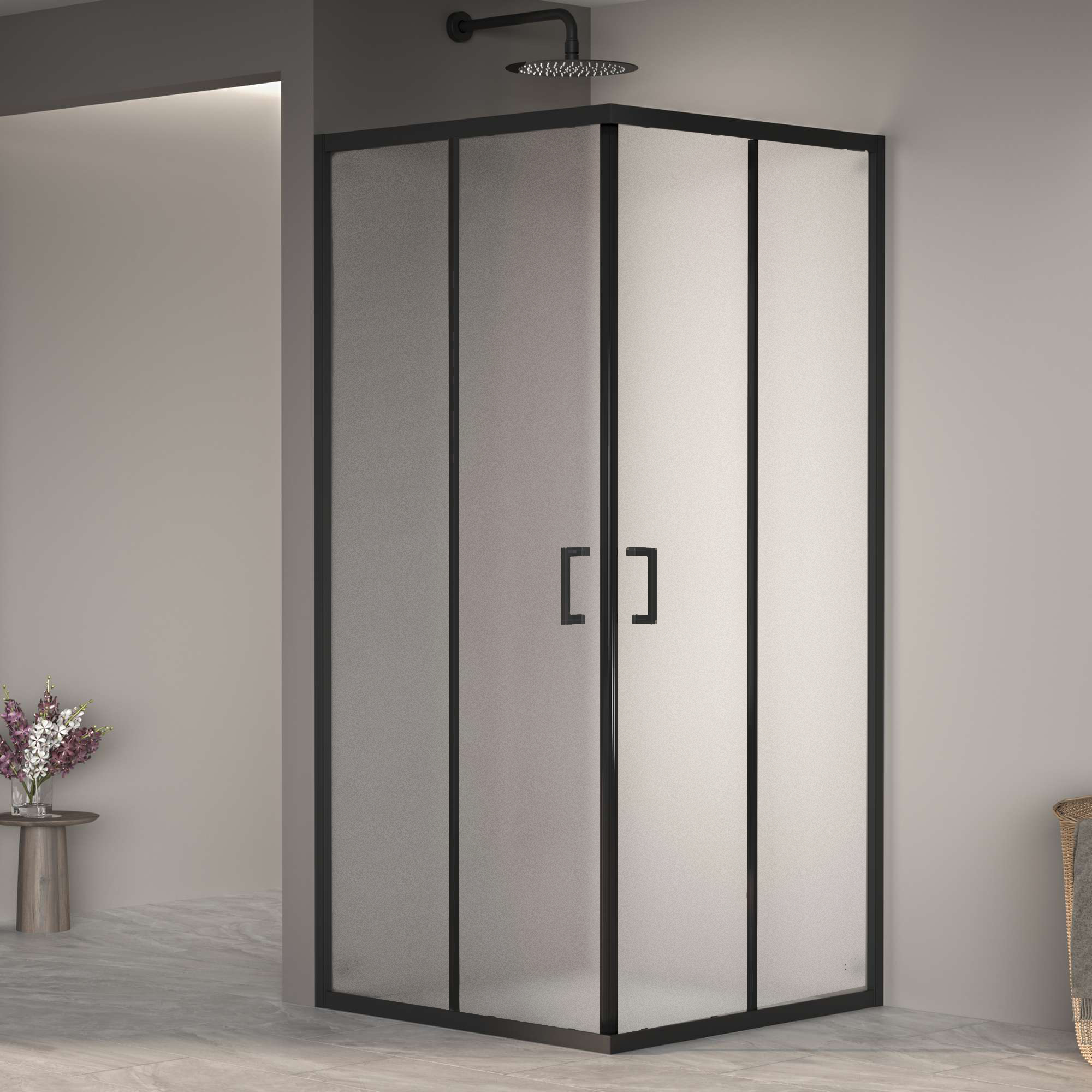 Высота душевого уголка составляет 1950 мм, что позволяет использовать его даже для людей высокого роста. Стойки и рама изготовлены из анодированного алюминия, для предотвращения коррозии и сохранения привлекательного внешнего вида на долгие годы.