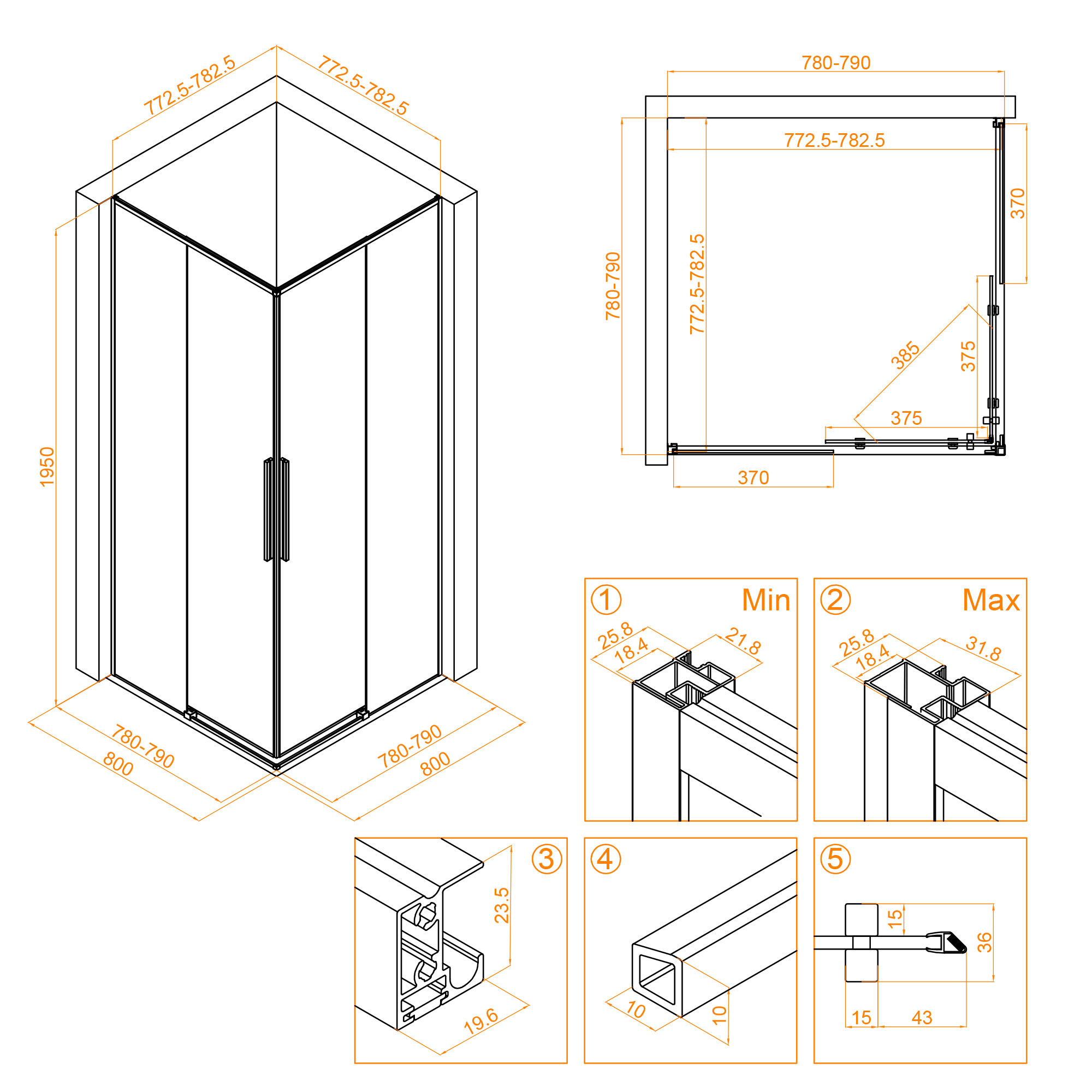 Душевой уголок имеет квадратную форму, что позволяет оптимально использовать пространство в вашей ванной комнате. Высота уголка составляет 1950 мм, что обеспечивает достаточное пространство для комфортного принятия душа.