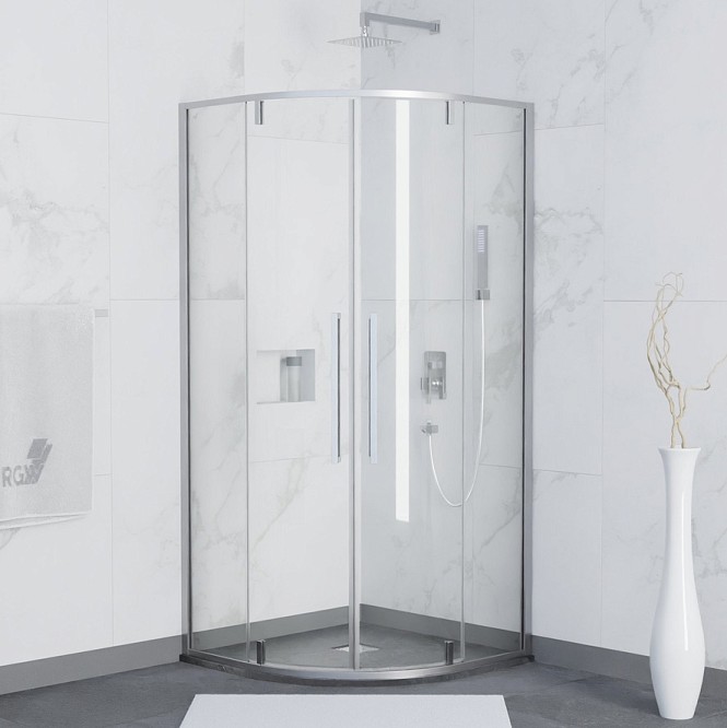 Уголок выполнен из прочного материала, который обеспечивает долгий срок эксплуатации - его стекло имеет толщину 6 мм, что является оптимальным показателем для дверей душевой кабины. Стекло прозрачное, что создает пространство и свободу в ванной комнате, а форма душевого угла полукруглая, что позволяет установить его как в углу, так и на прямой стене.