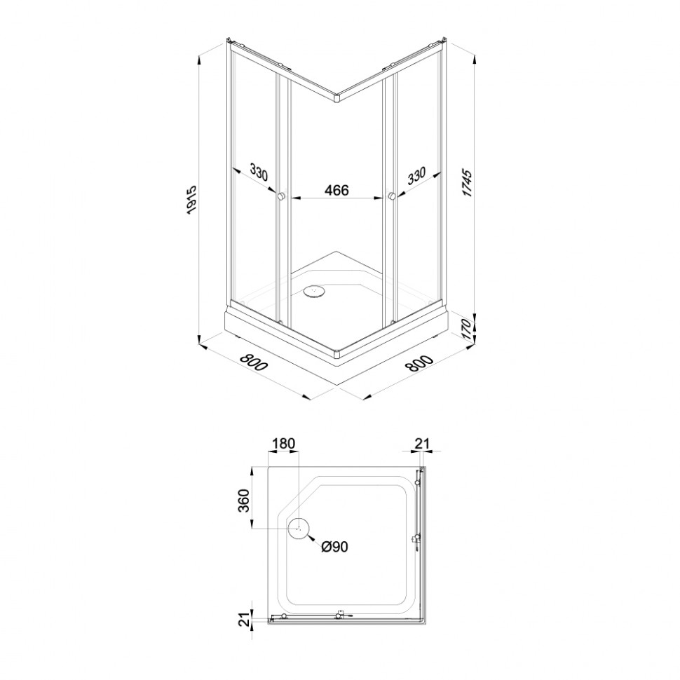 | Поддон | Низкий, 17 см, глубина 6,5 см/ сифон 90 мм |