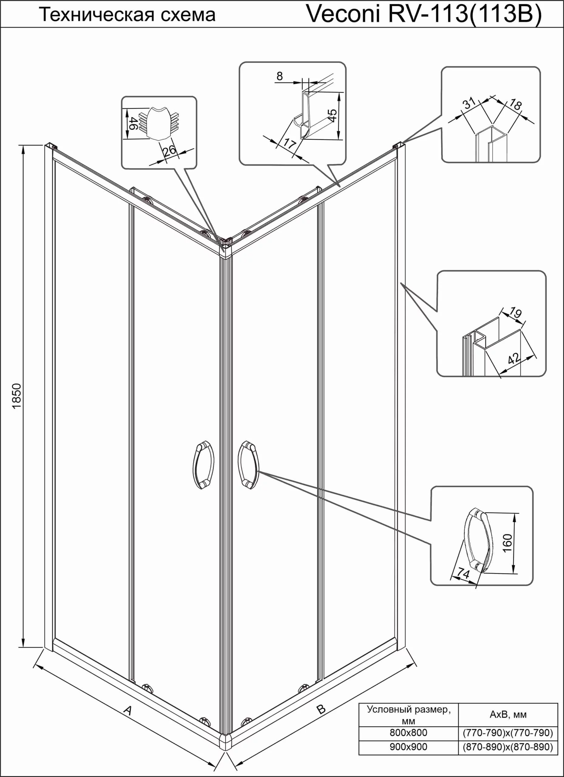 Душевой уголок Veconi Rovigo RV-113B 80х80 см прозрачное/ черный RV113B-80-01-C4