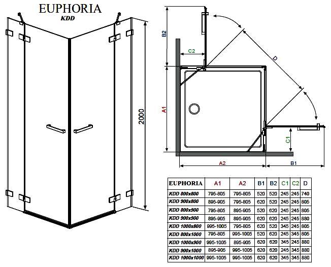 Дверь для душевого уголка Radaway Euphoria KDD 80 см хром 383061-01L/ 383061-01R