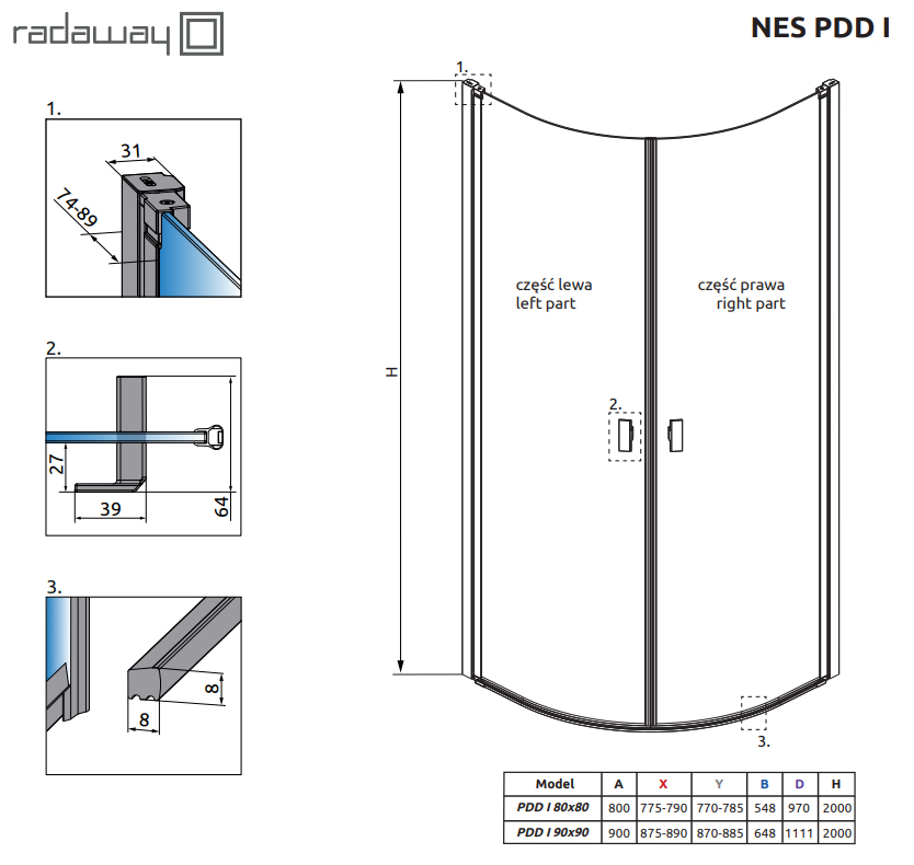 Дверь для душевого уголка Radaway Nes PDD I 80 см хром 10020080-01-01L/ 10020080-01-01R