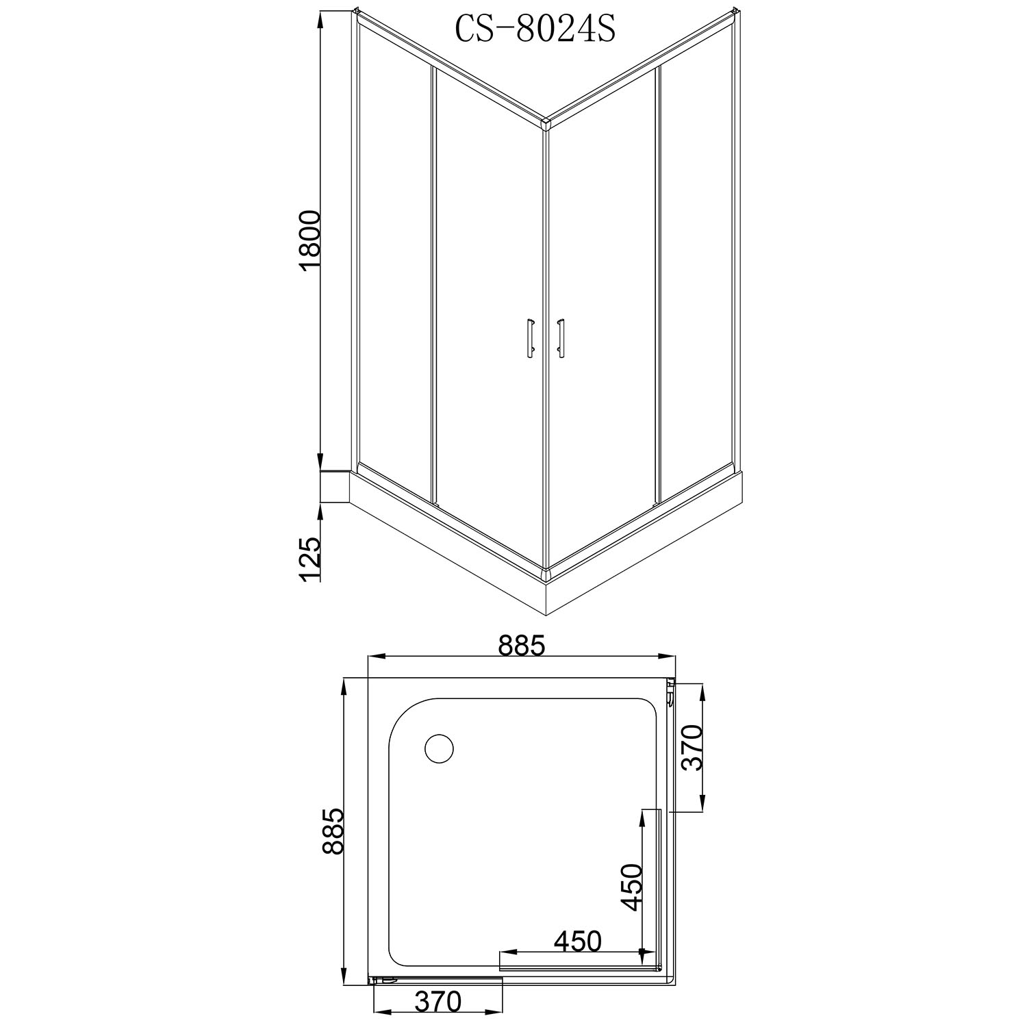Душевое ограждение с поддоном Loranto Sunway CS-8024S (90х90х195 см) белый/полосы 00058965