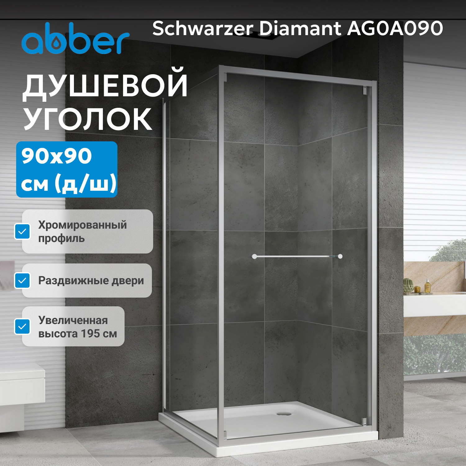 - Душевой уголок Abber Schwarzer Diamant 90х90 см хром/прозрачное AG0A090