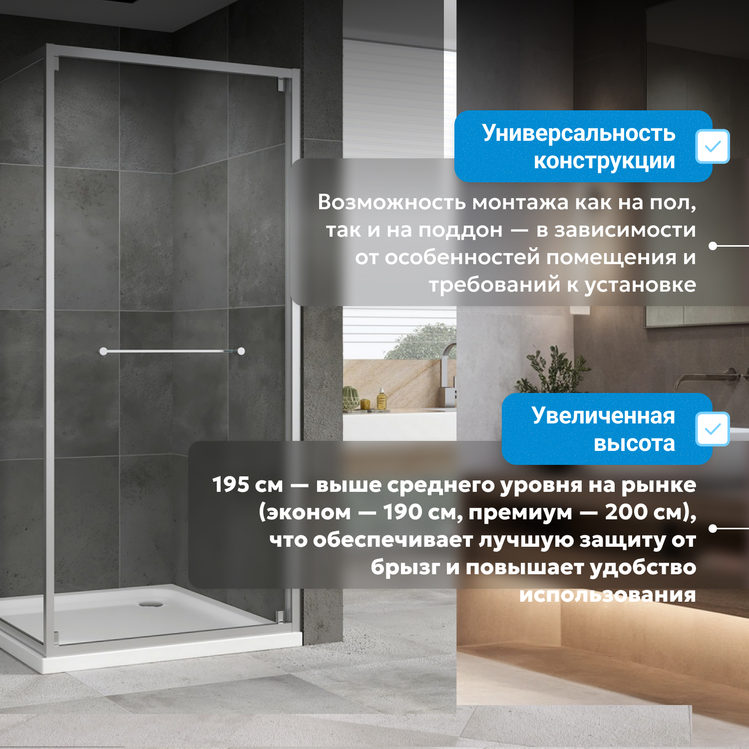 - Для уголков/дверей/шторок