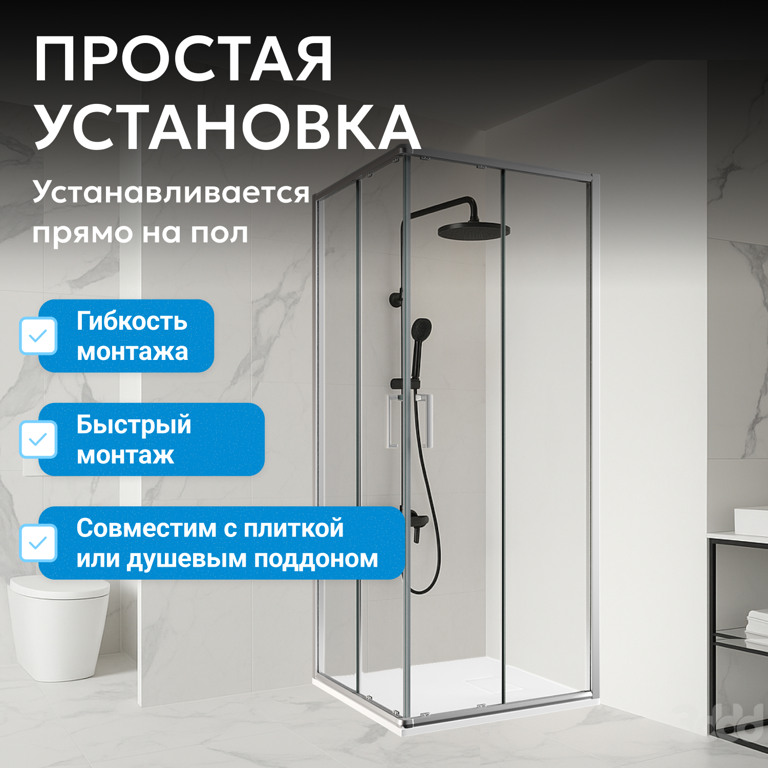 - возможна установка на пол и на поддон, поддон приобретается отдельно