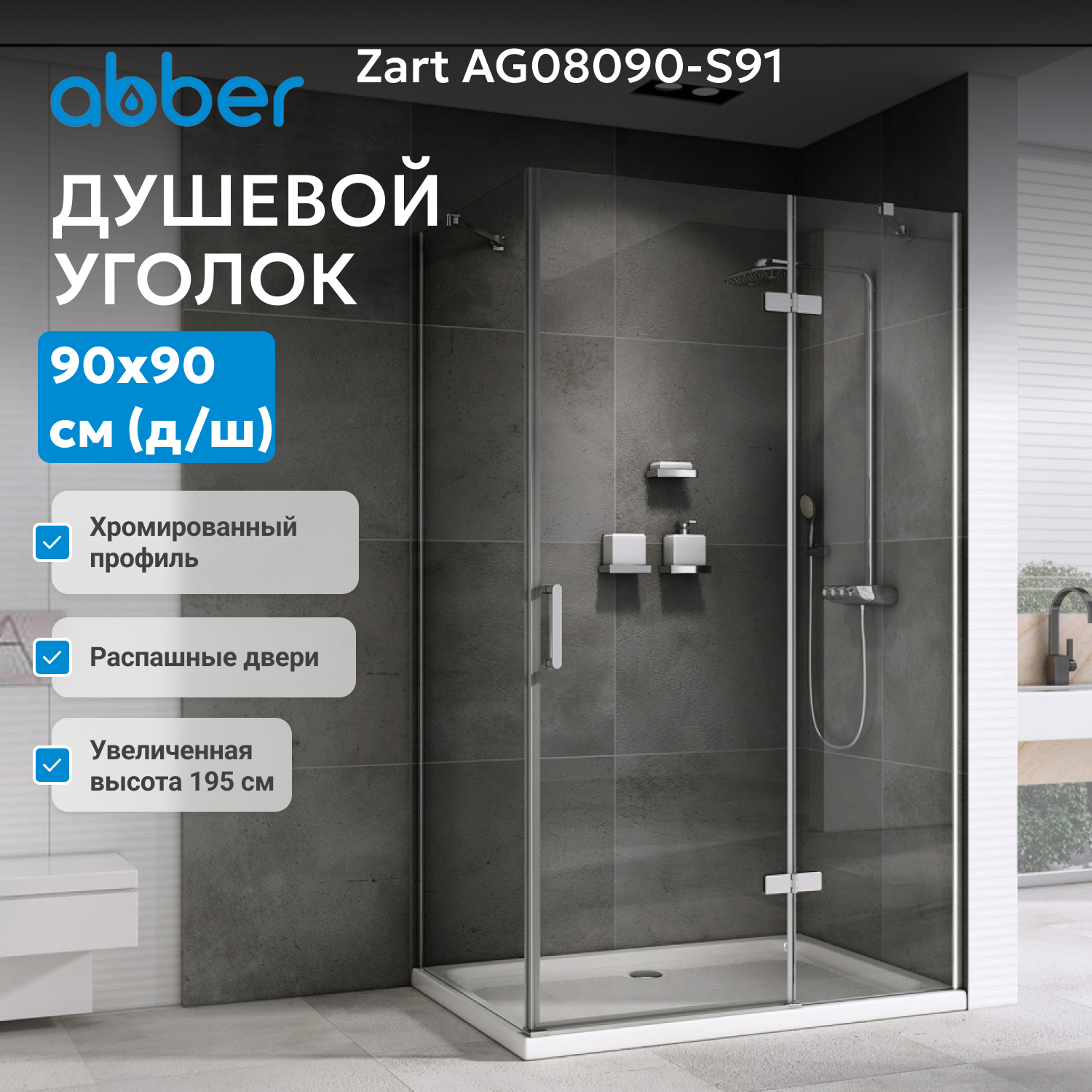 Душевой уголок Abber Zart 90х90х195 см хром/прозрачное AG08090-S91
