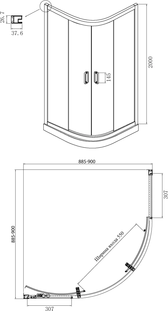 | Конструкция двери | 2 раздвижные/ вход 55 см |