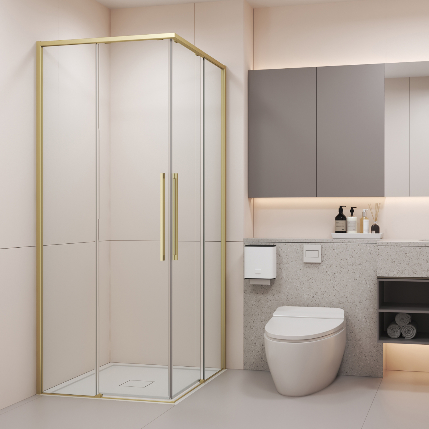 - Раздвижные двери не требуют дополнительного пространства и удобны даже в компактных ванных комнатах