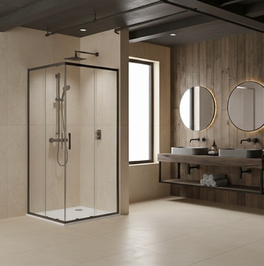 Душевой уголок CeramaLux 90х90х190 см оружейная сталь/прозрачное CL902-90 GREY