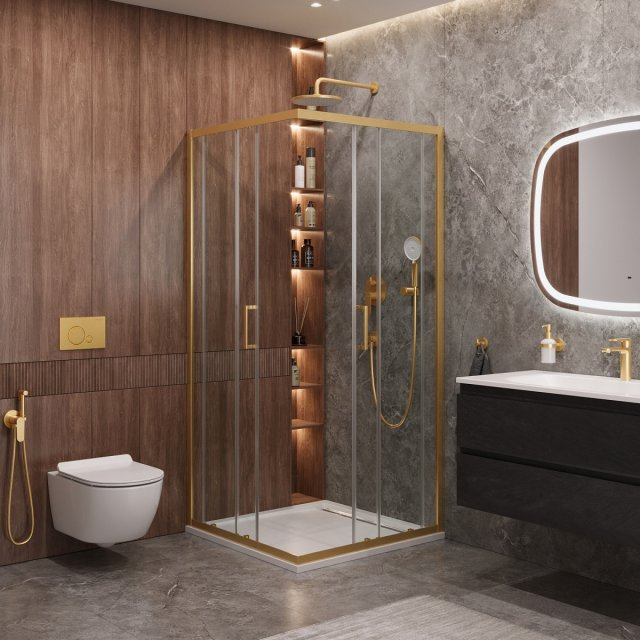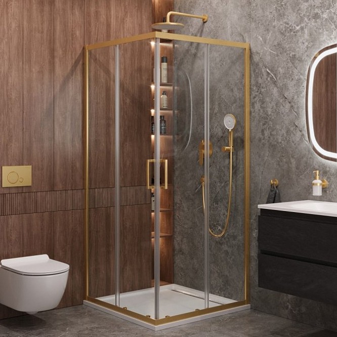 - Душевой уголок Cezares Molveno A-2 90х90 см браш золото/прозрачное MOLVENO-A-2-90-C-BORO-IV