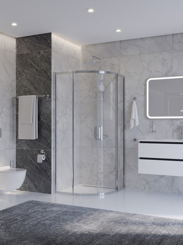 - Душевой уголок Cezares Plane 90х90х195 см хром/ прозрачное PLANE-R-2-90-C-CR
