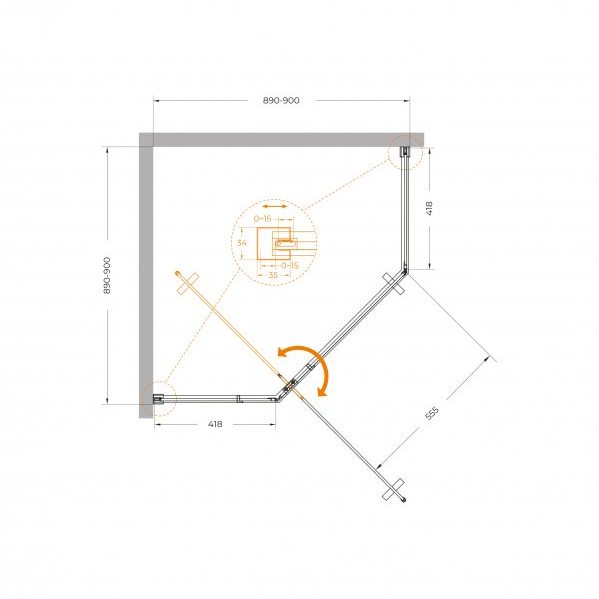 Душевой уголок Cezares Plane 90х90х195 см хром/ прозрачное PLANE-R-2-90-C-CR