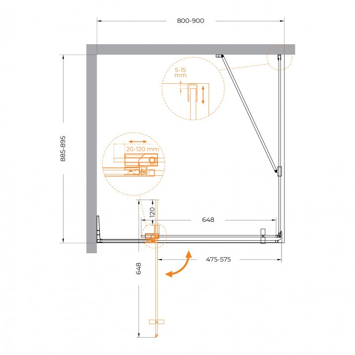 | Конструкция двери | 1 распашная, вход 47,5-57,5 см |