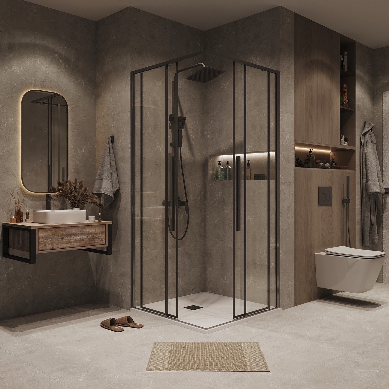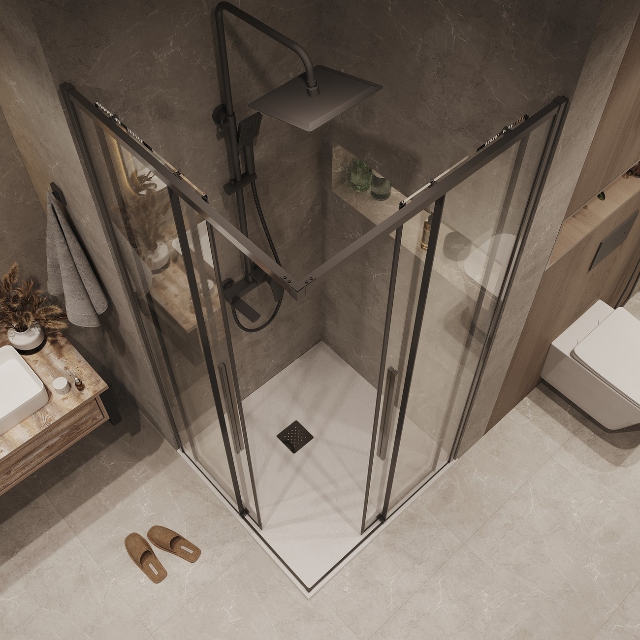 Душевой уголок Grossman Galaxy (90х90х195 см) графит сатин/прозрачное 300.K33.01.9090.42.00