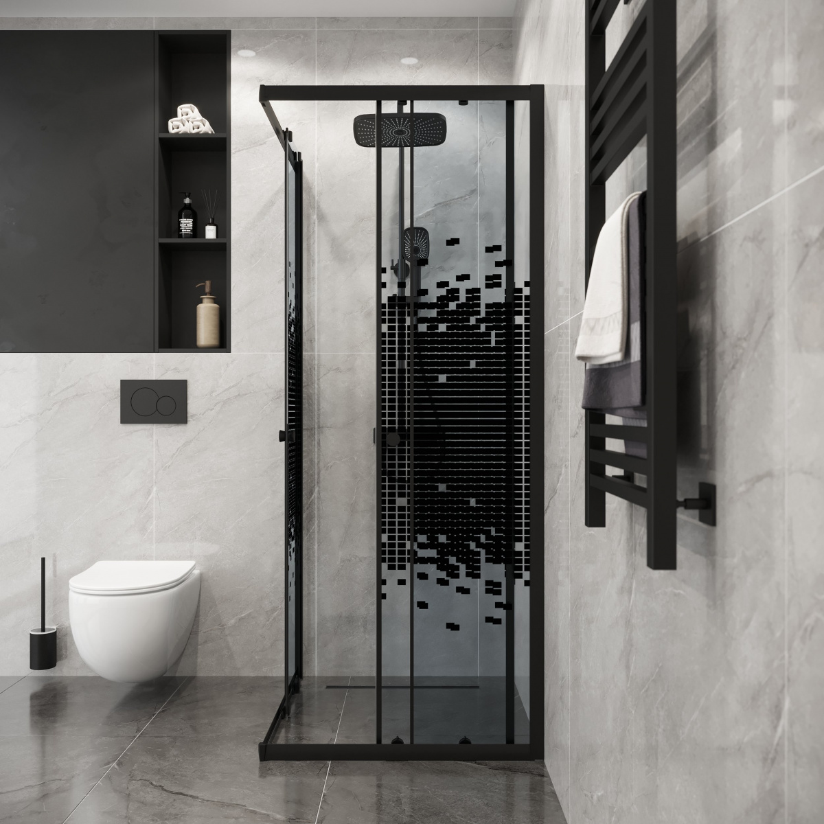 Душевой уголок Niagara Eco (90х90х190 см) черный/мозаика NG-1009-14QBLACK