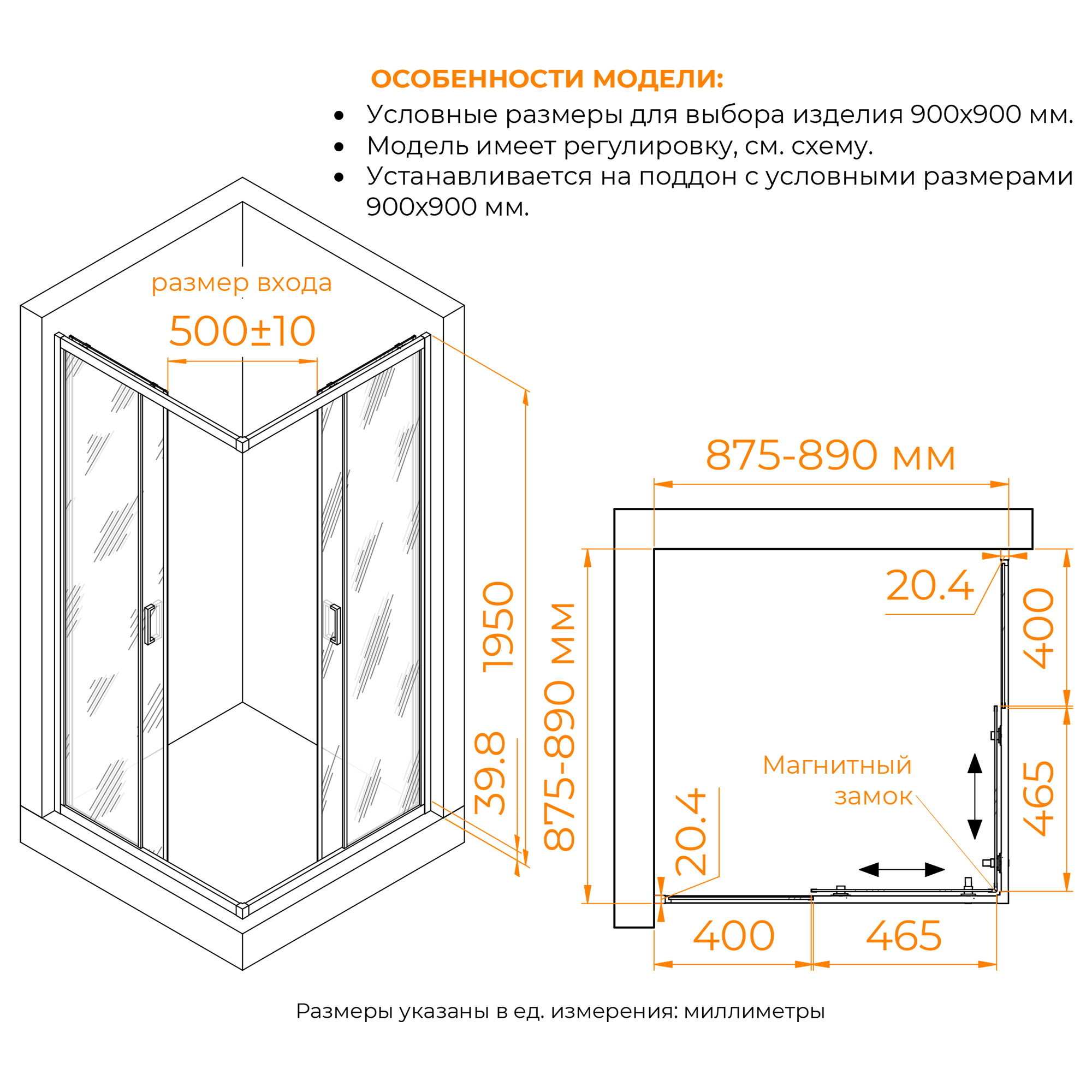 | Конструкция двери | Раздвижная (2), ролики верх/низ, ширина входа 50 см |
