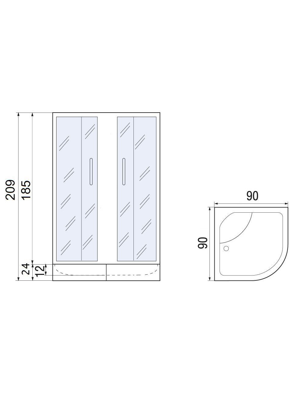 Душевой уголок с поддоном River DON XL 90/40 МТ 90х90х209 см хром/матовое 10000011744