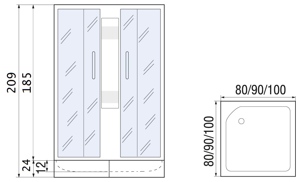 Душевой уголок с поддоном River MORAVA XL 90/24 МТ 90х90х209 см хром/матовое 10000008324