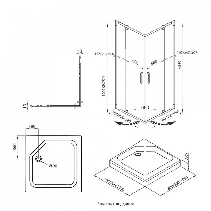 Душевой уголок с поддоном Triton Каппа Хром 90х90 Щ0000054221