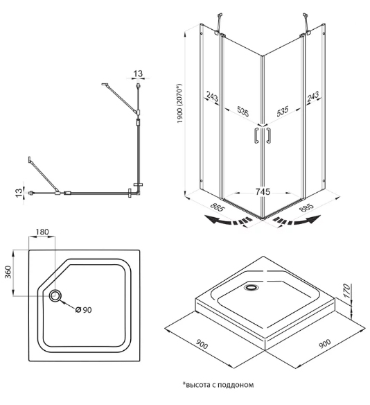 Размеры: 90х90х207 см