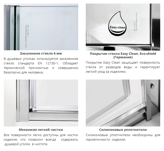 | Особенности | Силиконовый уплотнитель двери с магнитным замком/ регулирующий профиль до 30 мм/ телескопический регулирующий профиль до 50 мм |