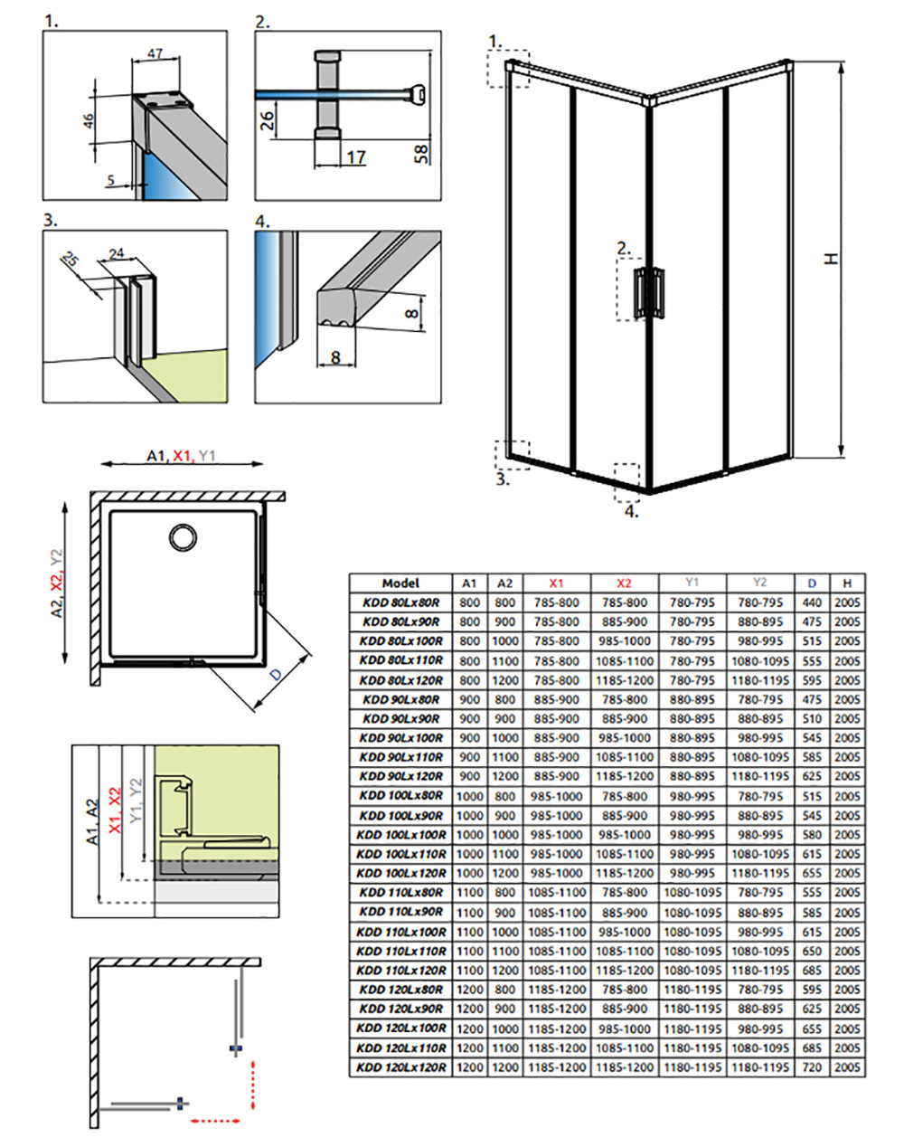 Коллекция Idea - это первая коллекция в стиле настоящего минимализма — двойные ролики спрятаны внутри профилей, на пристенных профилях отсутствуют даже заглушки болтов — в место них маскировочная лента Nastro Chromo. Все изделия серии допускается устанавливать как на поддон так и непосредственно на пол. Кроме того, все изделия допускается устанавливать с порогом или без порога меняя нижний фиксатор (в комплекте).