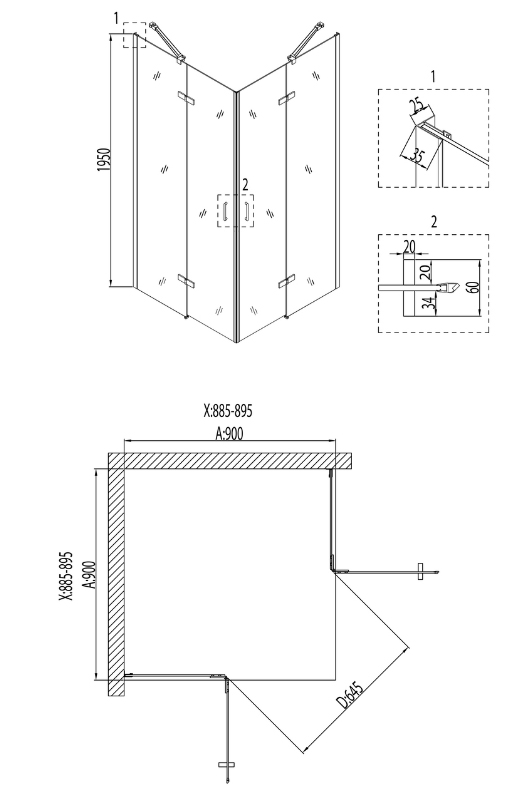 | Конструкция двери | 2 распашные, вход 64,5 см |