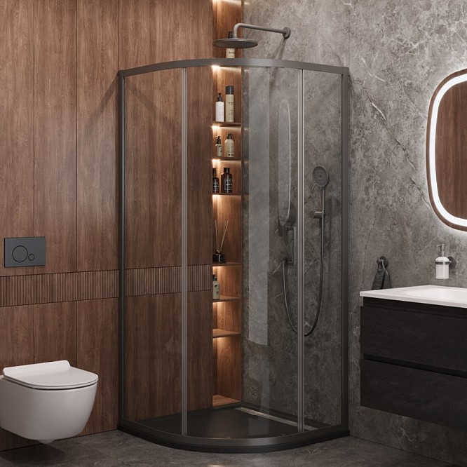 - Полукруглый душевой уголок Cezares Molveno R-1 90х90 см оружейная сталь/прозрачное MOLVENO-R-1-90-C-GM-IV