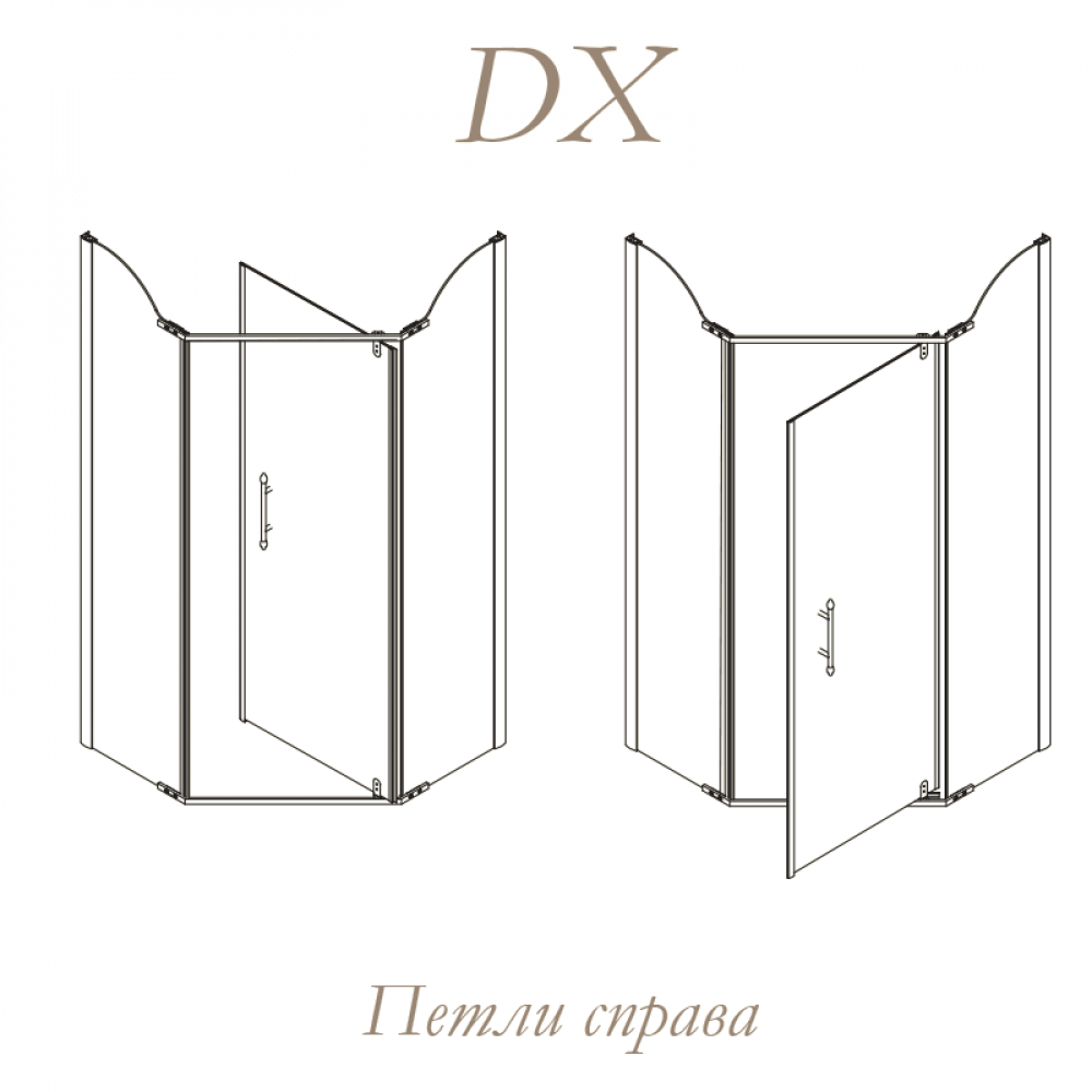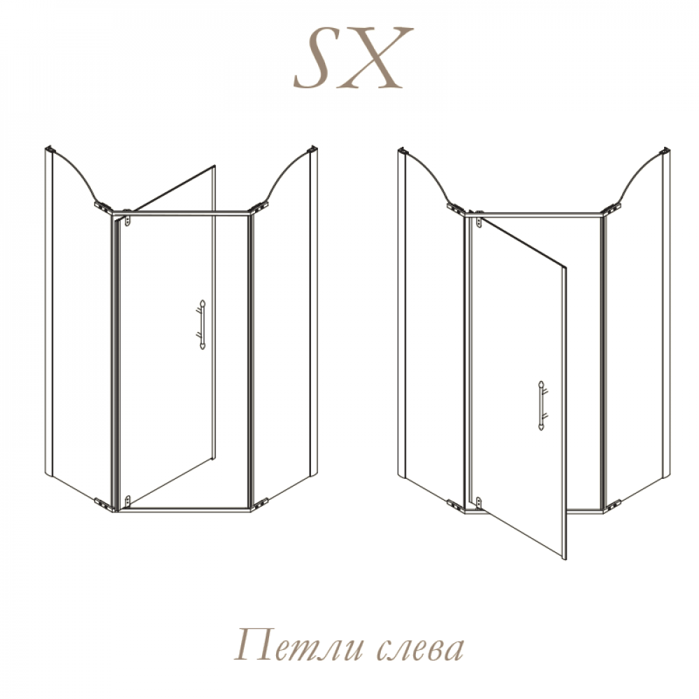Душевой уголок пятиугольный, 100x100xH195cm, дверь распашная 74cm левая/правая (SX-DX)