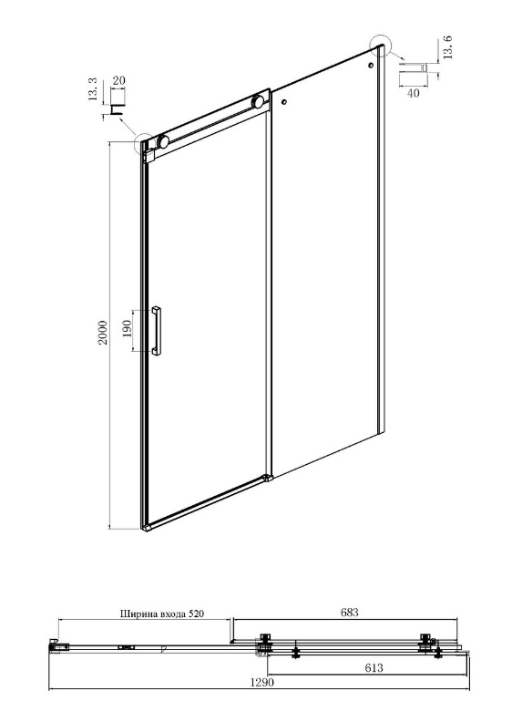 | Конструкция двери | 1 раздвижная/ вход 52 см/ верхние ролики сталь |