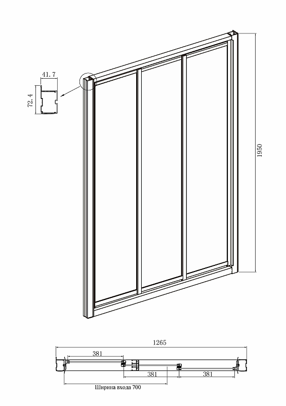 | Конструкция двери | Раздвижная 2 секции/ вход 70 см |