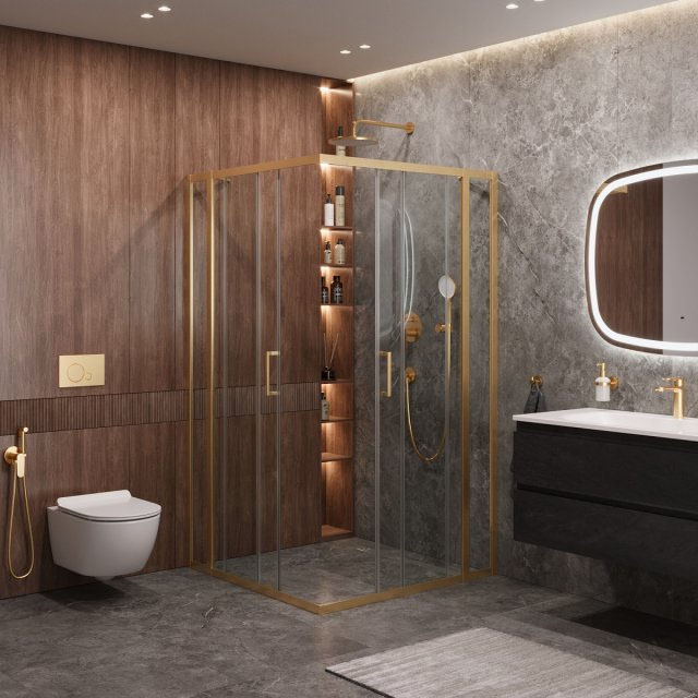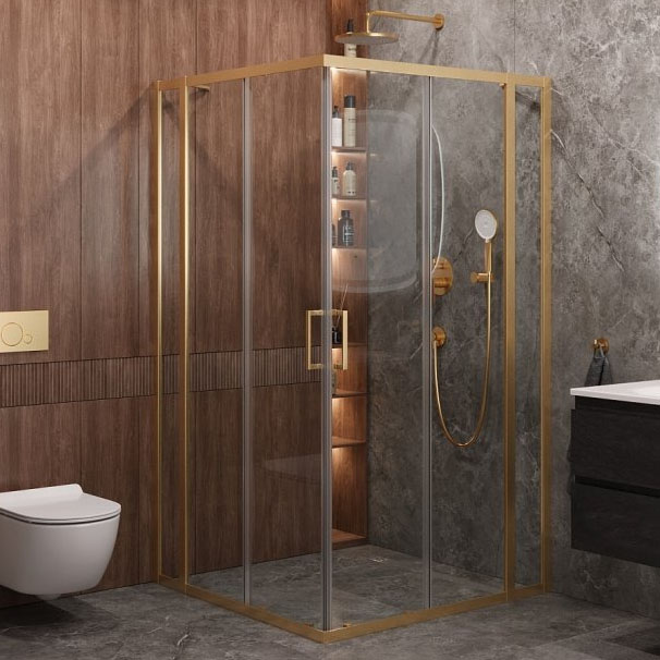 - Душевой уголок Cezares Molveno A-22 120х120 см браш золото/прозрачное MOLVENO-A-22-90+30-C-BORO-IV