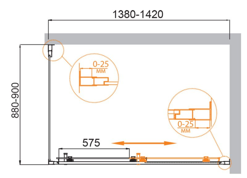 | Конструкция двери | 1 раздвижная, вход 57,5 см/ двойные подшипниковые ролики |