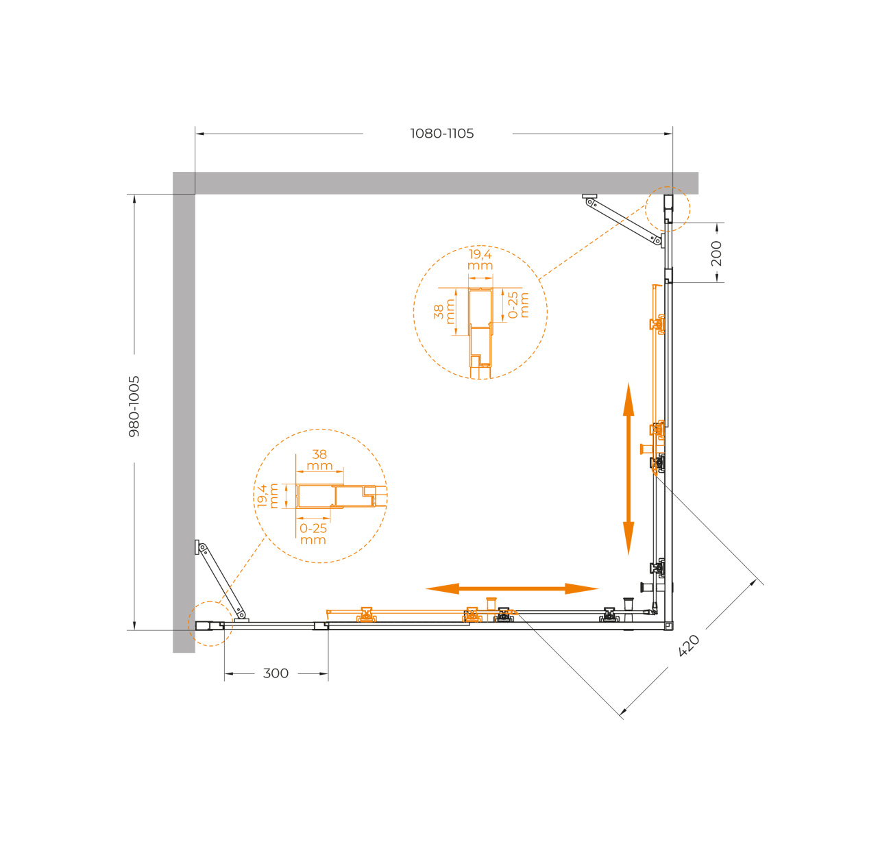 | Конструкция двери | 2 раздвижные, вход 42 см/ двойные подшипниковые ролики |