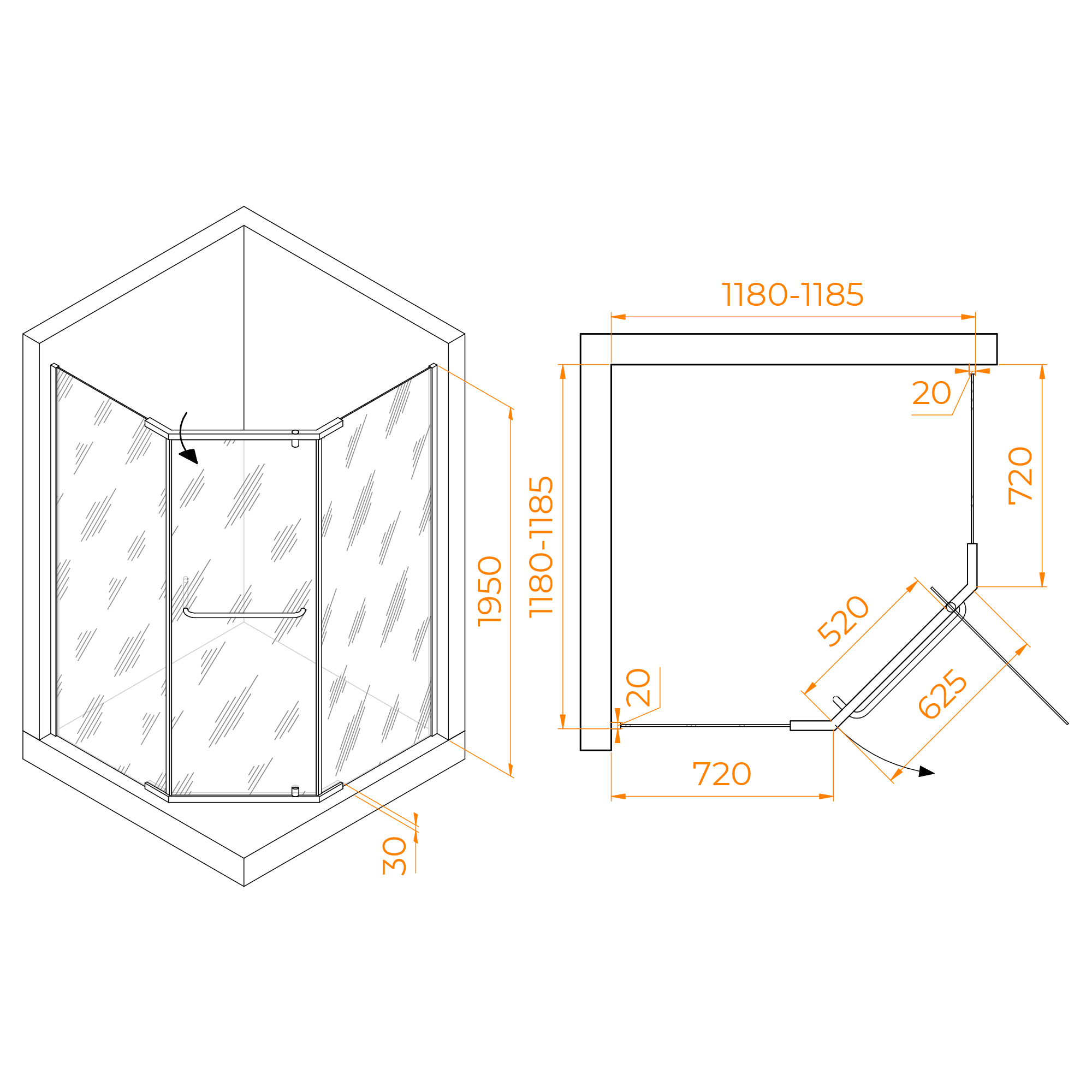 Стекло душевого уголка прозрачное, что создает ощущение простора и света. Оно также имеет покрытие анти капля Easy Clean, которое предотвращает образование водных разводов и легко чистится. Высота душевого угла составляет 1950 мм, что позволяет комфортно использовать его для людей разного роста.