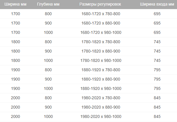 | Конструкция двери | 2 раздвижные, вход 69,5 см |