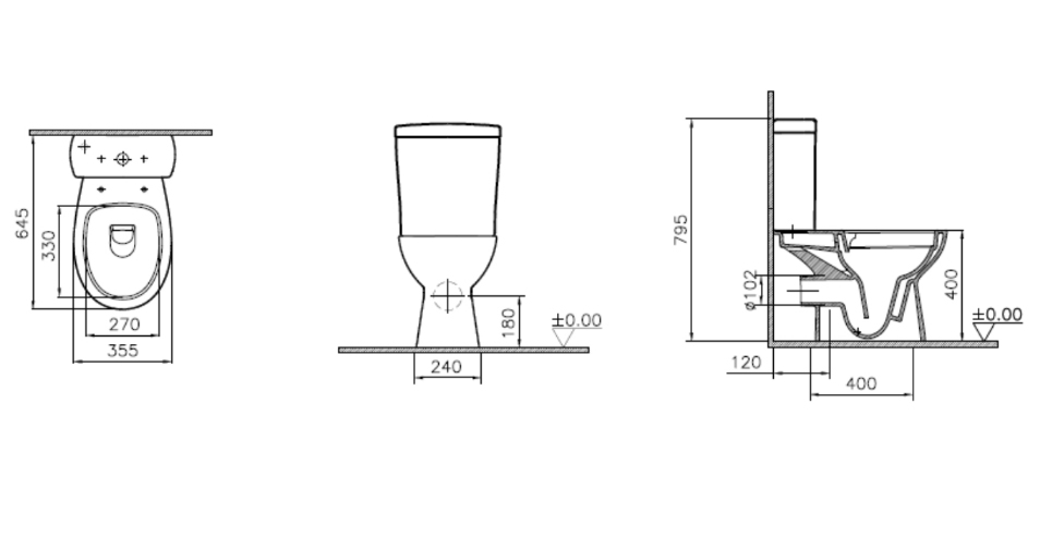 Срытые крепления к полу (отсутствие технологических выемок по бокам унитаза под крепления, где могла бы скапливаться пыль и грязь)