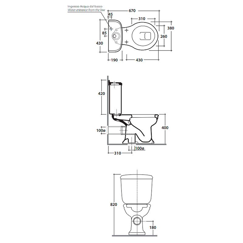 Унитаз - компакт Globo Paestum слив в стену PA004BI без бачка/ крышки