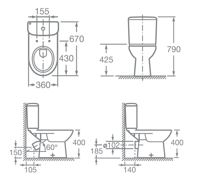 Унитаз - компакт Roca Access 34P23800Y горизонтальный выпуск