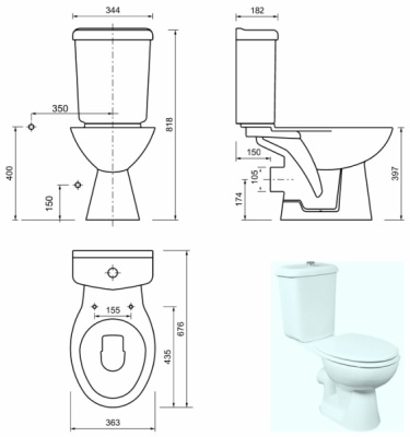 Унитаз-компакт выпуск в стену Creavit Pitta PA310-11CB00E-0000 крышка на выбор