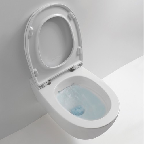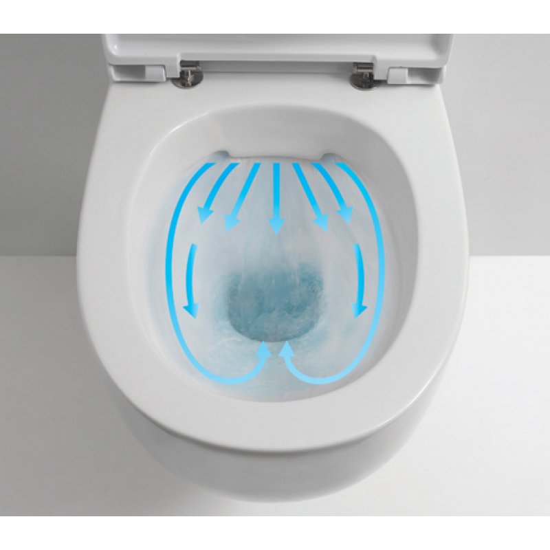 Безободковая конструкция Senzabrida (5 распределенных потоков, которые сфокусированы в одной точке в задней части чаши и не прерывается на периметре ободка, чем гарантирует максимальную гигиену и очистку за один смыв)